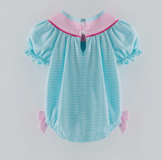 Baby Girls Summer Bow Embroidered Smocked Bubble