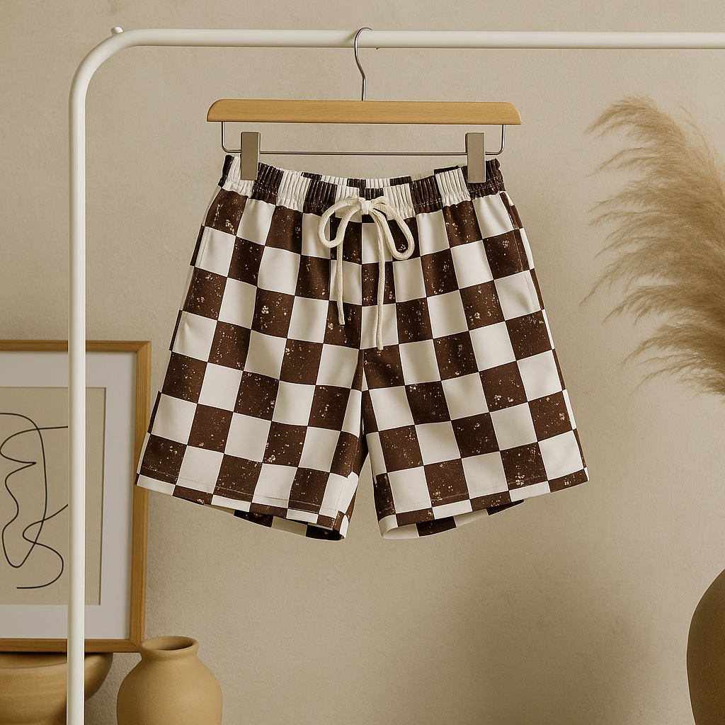 Brown checkered swim trunks